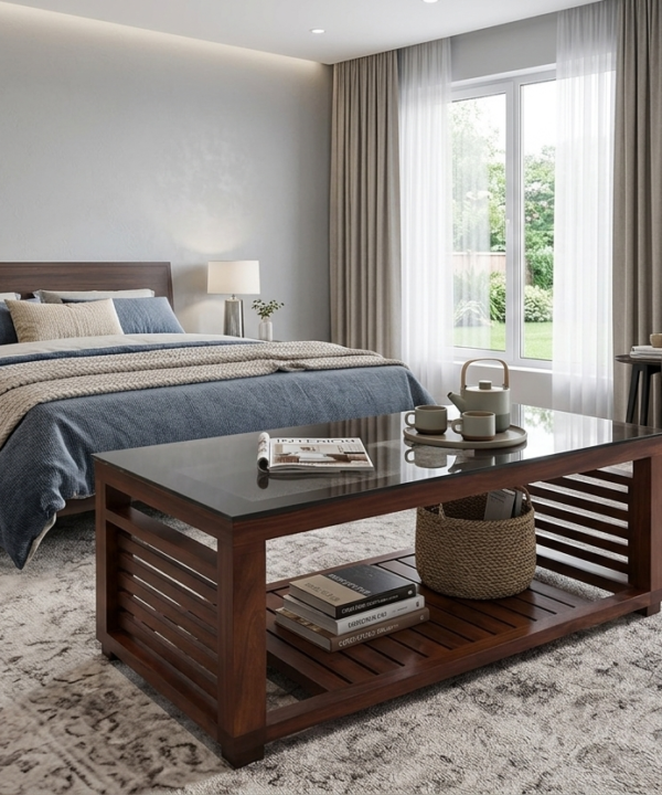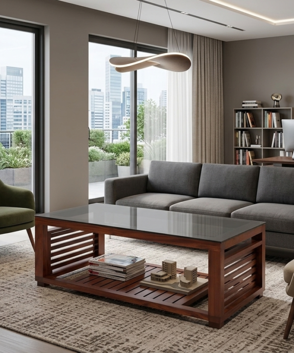 • Contemporary Teak-Finish Center Table for Living Room Contemporary Teak-Finish Center Table for Living Room