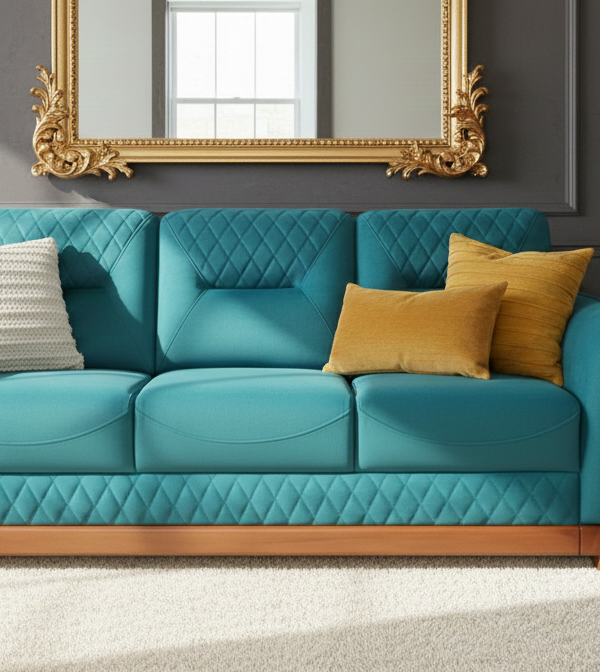 The Azure Horizon Luxe – 3-Seater Wood-Framed Sofa