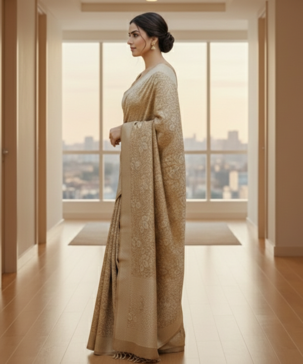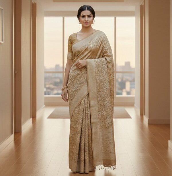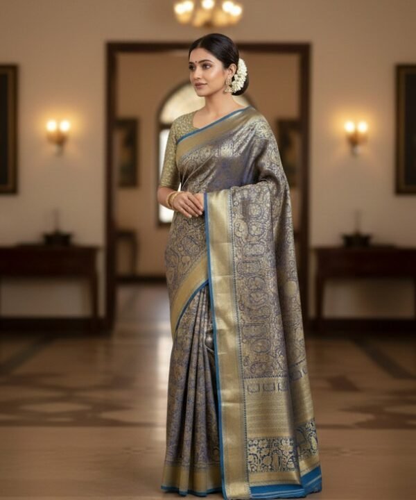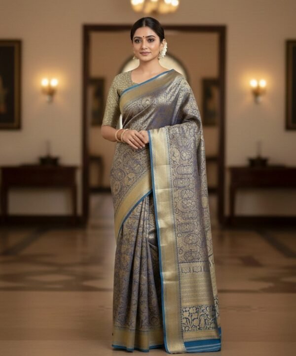 Earthy Rust Slate Blue Brocade Silk Saree