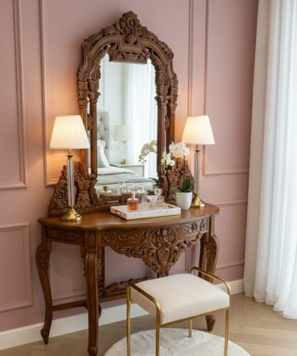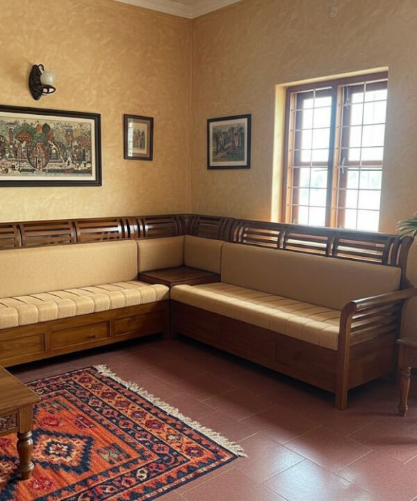 Elevate your living space with this exquisitely crafted teapoy, blending traditional craftsmanship with a modern, organic silhouette. Featuring a unique curved slatted design, this piece serves as a stunning focal point in any hallway or apartment living area.