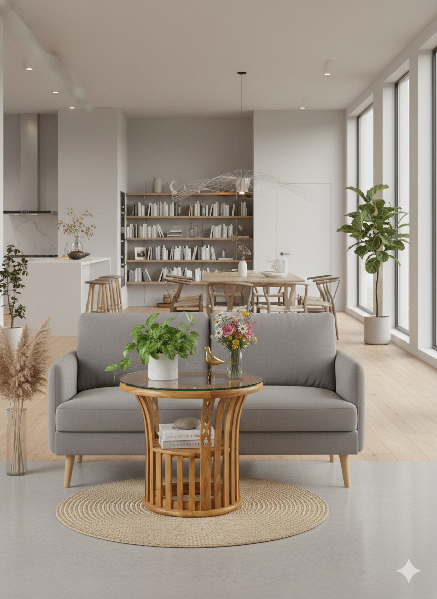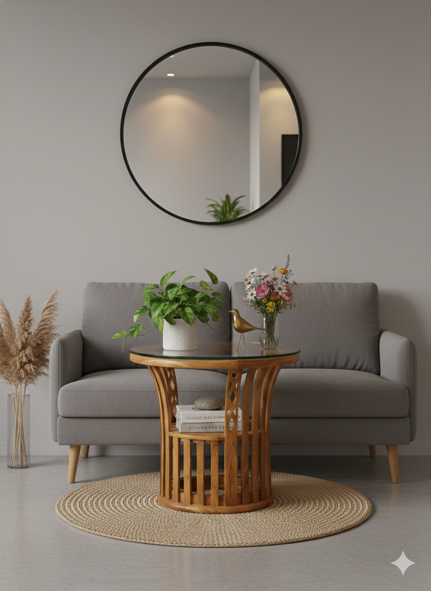 Bring a touch of organic elegance to your home with this unique “Tea Poy” (side table). Crafted from high-quality teak wood, this piece features a distinctive curved, slatted base that creates a sense of airy lightness while remaining incredibly sturdy.
