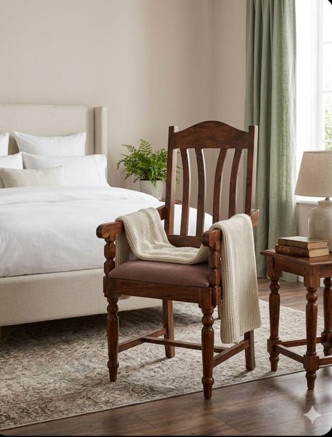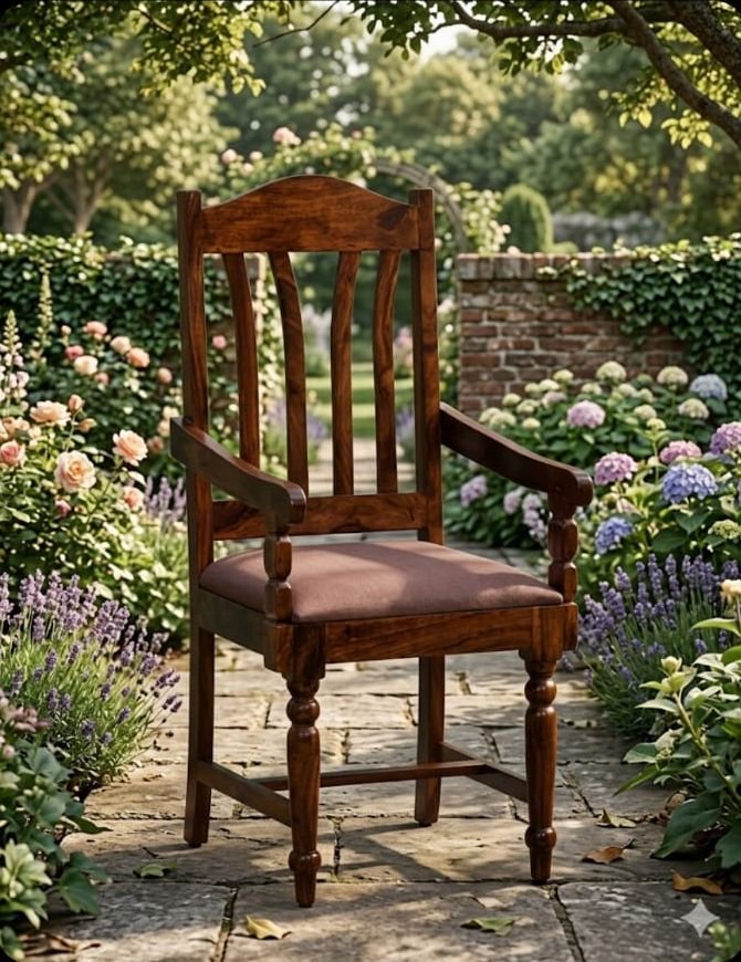 Infuse your home with the rich heritage of Kerala’s Nilambur Teak. This armchair is a masterpiece of traditional craftsmanship, utilizing teak wood sourced from the historic Nilambur region, celebrated for its dense grain and natural resistance to the elements. The deep chocolate-gold finish provides a sophisticated look that highlights the wood’s natural character.