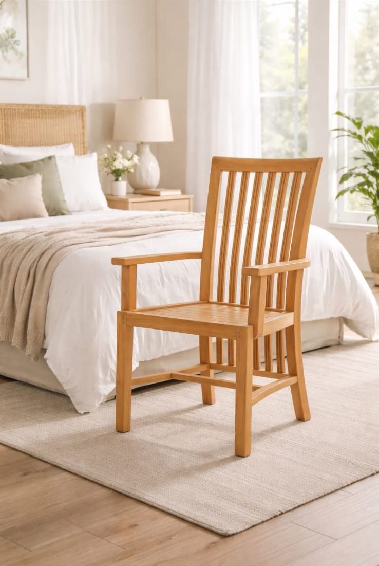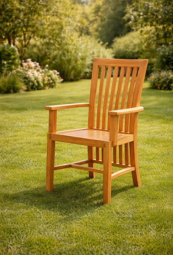 ​Embrace the prestige of Kerala’s Nilambur Teak, a wood so legendary it was the first in the world to be granted a Geographical Indication (GI) tag. This high-back armchair is carved from premium heartwood, celebrated for its high silica and oil content, which provides a natural, golden-matte luster and unmatched structural integrity.