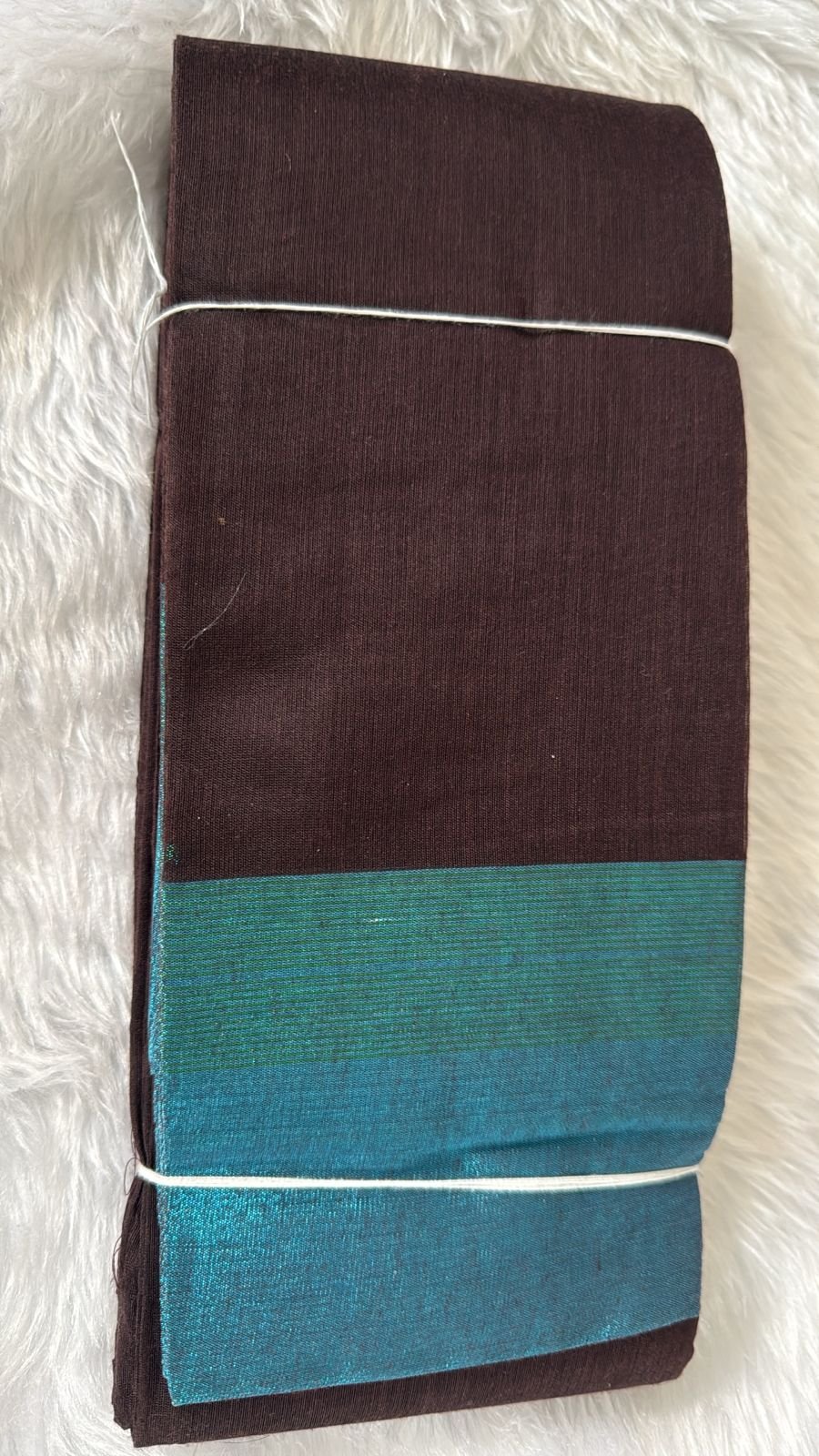Coffee Brown & Turquoise Blue Contemporary Cotton Saree