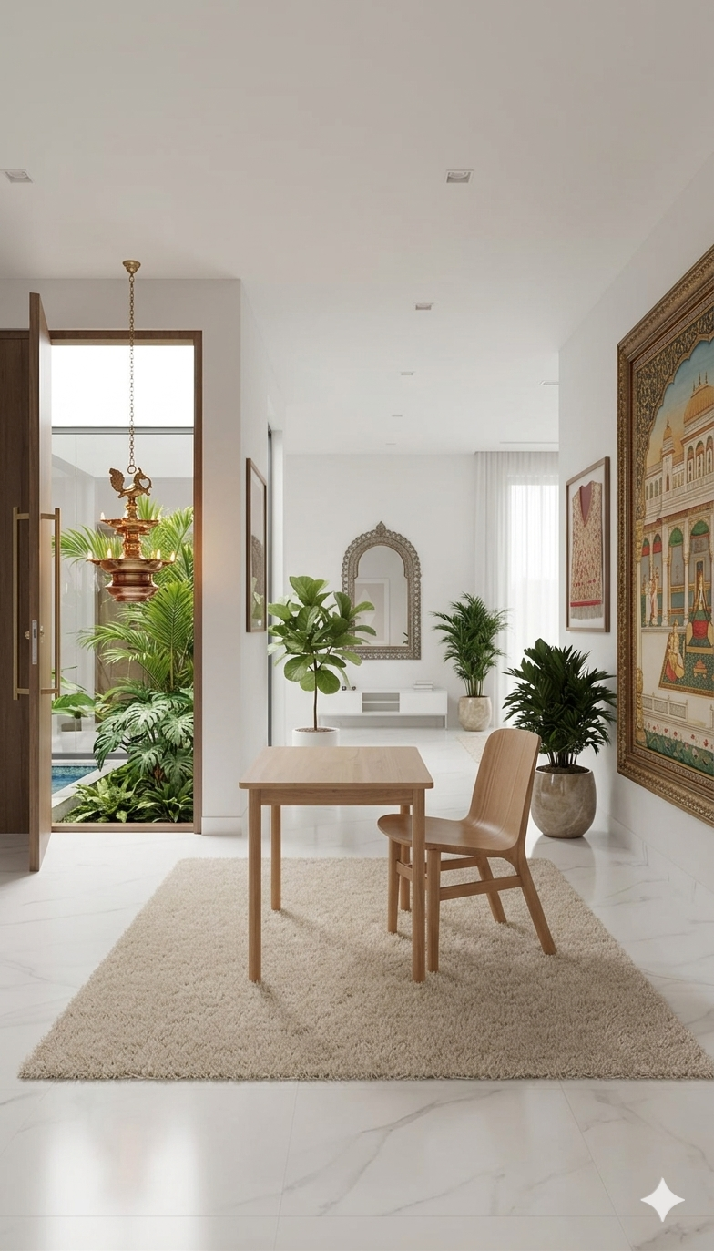 This image showcases a minimalist dining or study set crafted from authentic Kerala Nilambur Teak Wood, renowned for its exceptional durability and rich, golden-brown grain. The set includes a sleek, rectangular table and a matching ergonomically contoured chair, both highlighting the natural elegance of the timber.