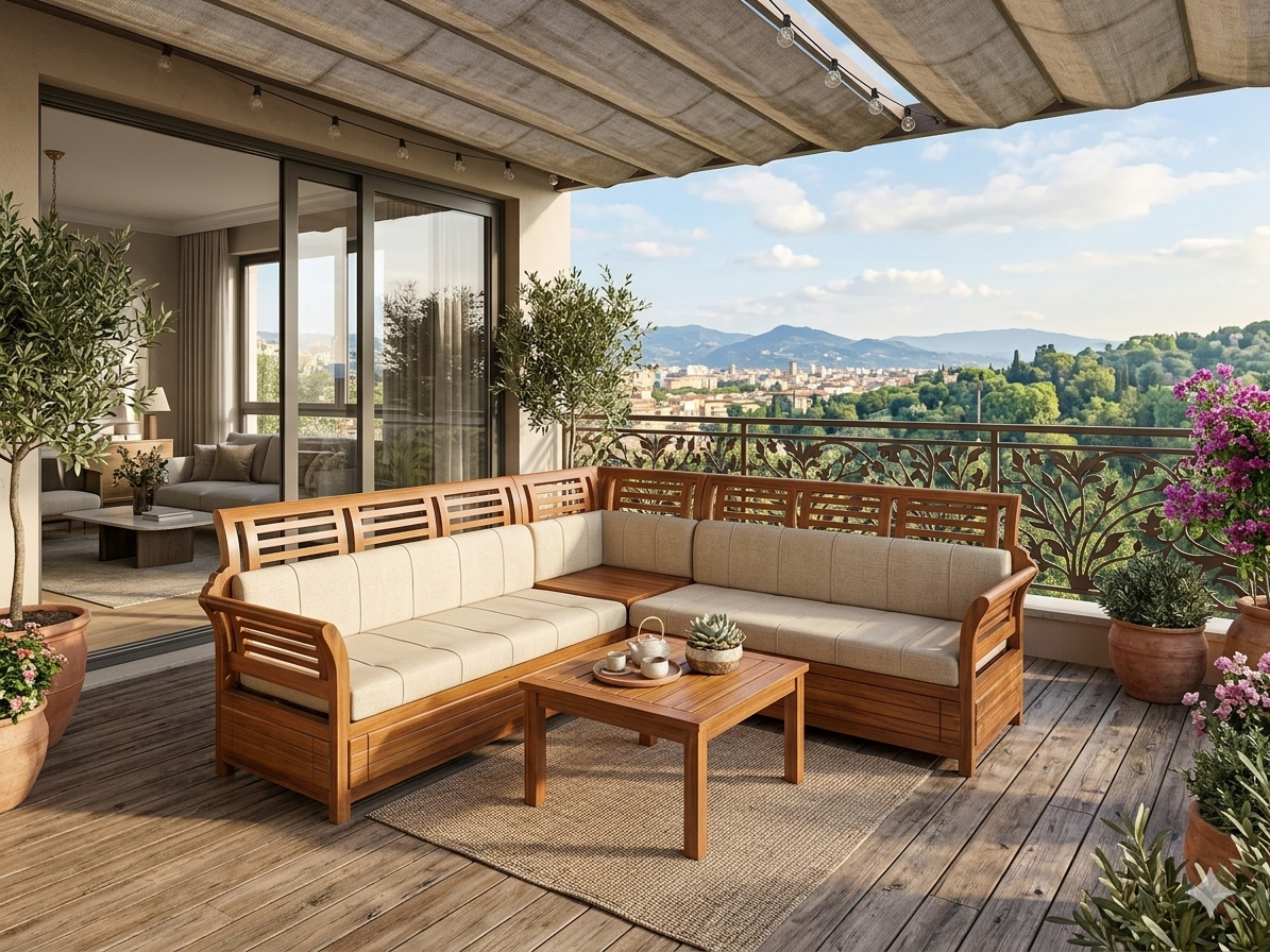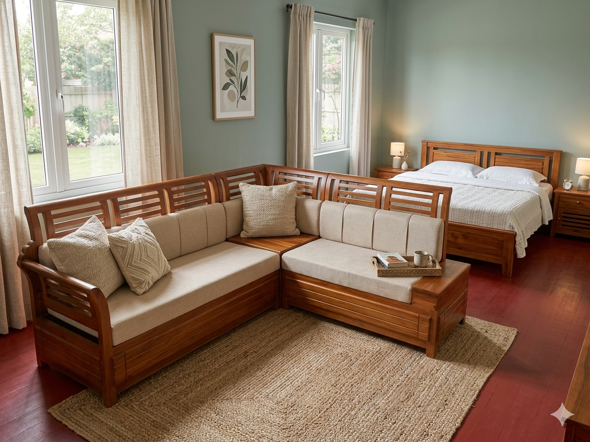 Kerala Nilambur Teak Corner Sofa Set.