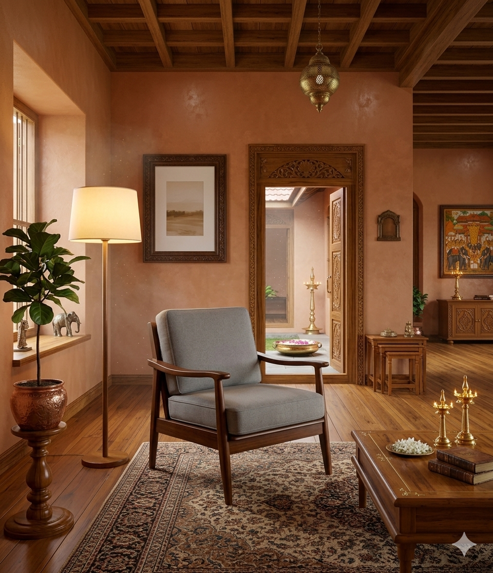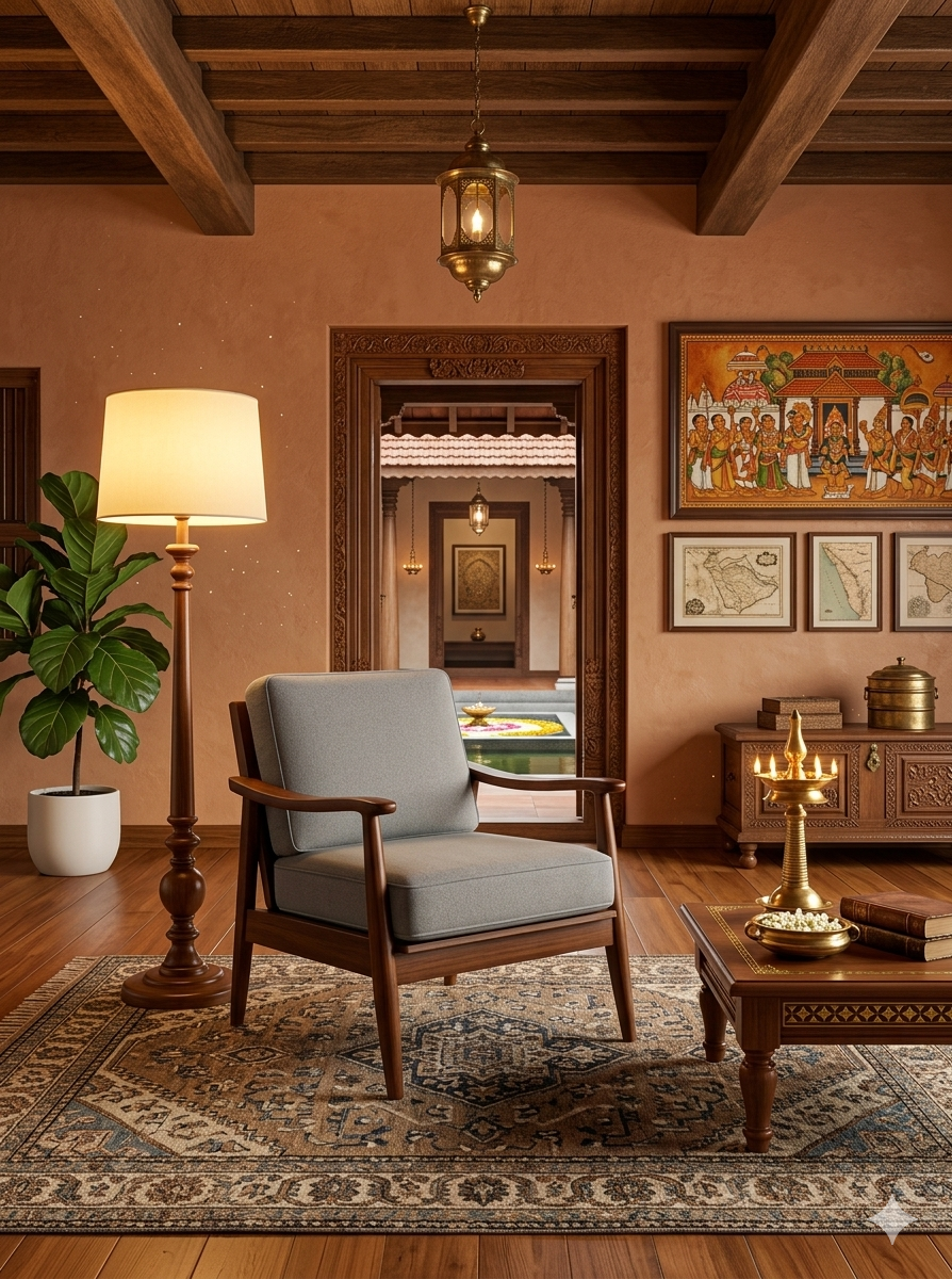 This elegant lounge chair showcases the timeless beauty and strength of Kerala Nilambur teak wood, crafted into a modern, comfortable seating piece that enhances any living space.