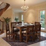 The set features a classic oval-shaped dining table paired with six high-back chairs, showcasing a rich, deep-toned finish that highlights the wood’s natural, swirling grain patterns. This timeless design is built to be a multi-generational heirloom, combining durability with a sophisticated aesthetic.
