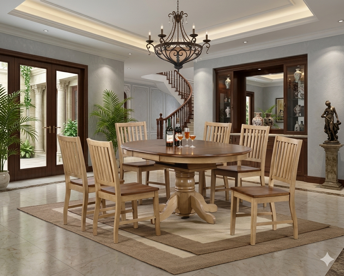 This teak wood is known for its golden to medium brown color that deepens beautifully with age. It often features straight grains with a smooth texture, giving furniture a classy and elegant look. One of its biggest advantages is its natural oil content, which makes it highly resistant to moisture, termites, and decay—perfect for long-lasting indoor and even semi-outdoor use.