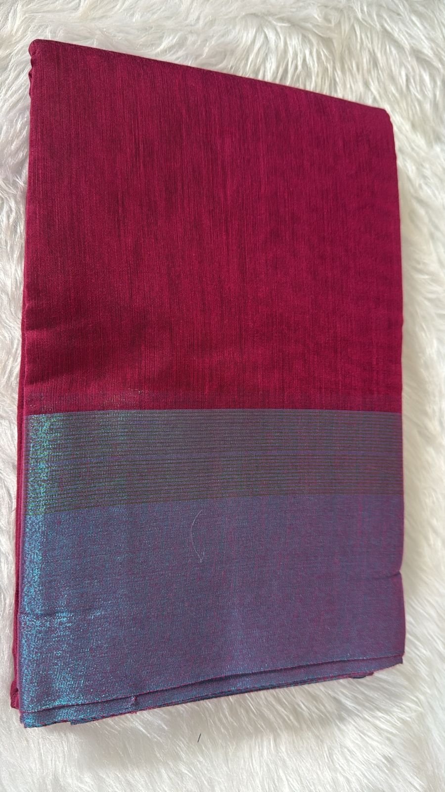 Magenta Elegance: Handloom Linen Saree with Metallic Slate Border