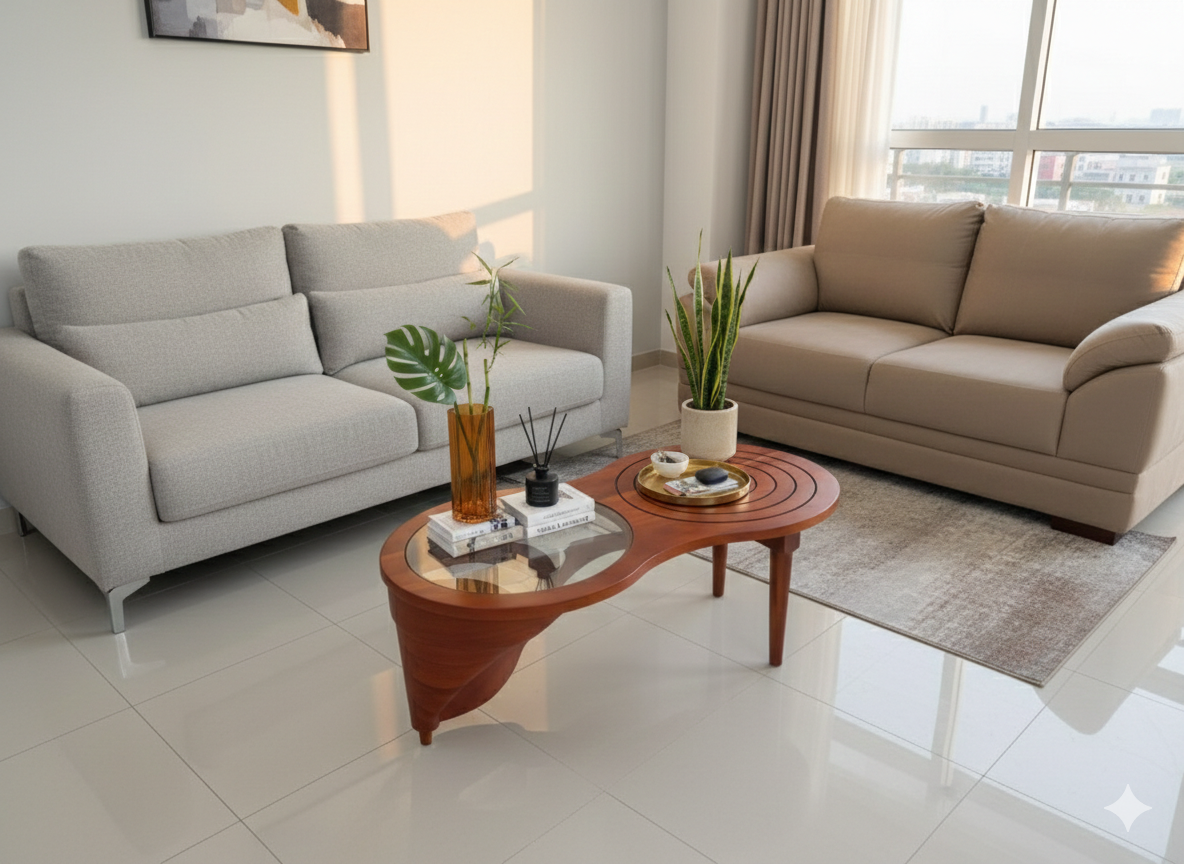 Elevate your living space or hallway with this stunning, sculptural tea table. Featuring a unique peanut-shaped silhouette, this piece is a perfect blend of organic form and modern functionality.