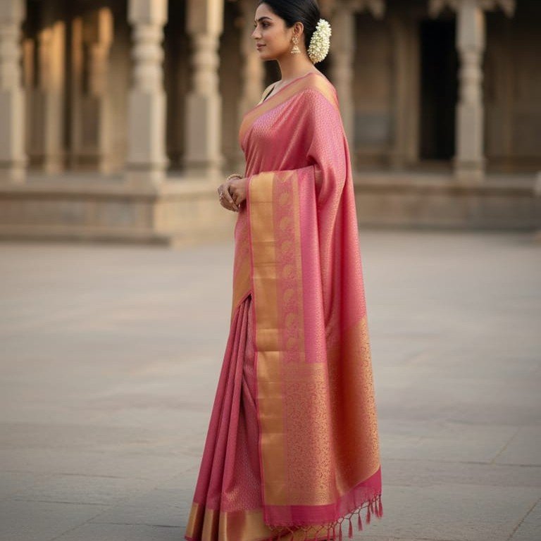 Color: Vibrant Pink with Gold Zari.