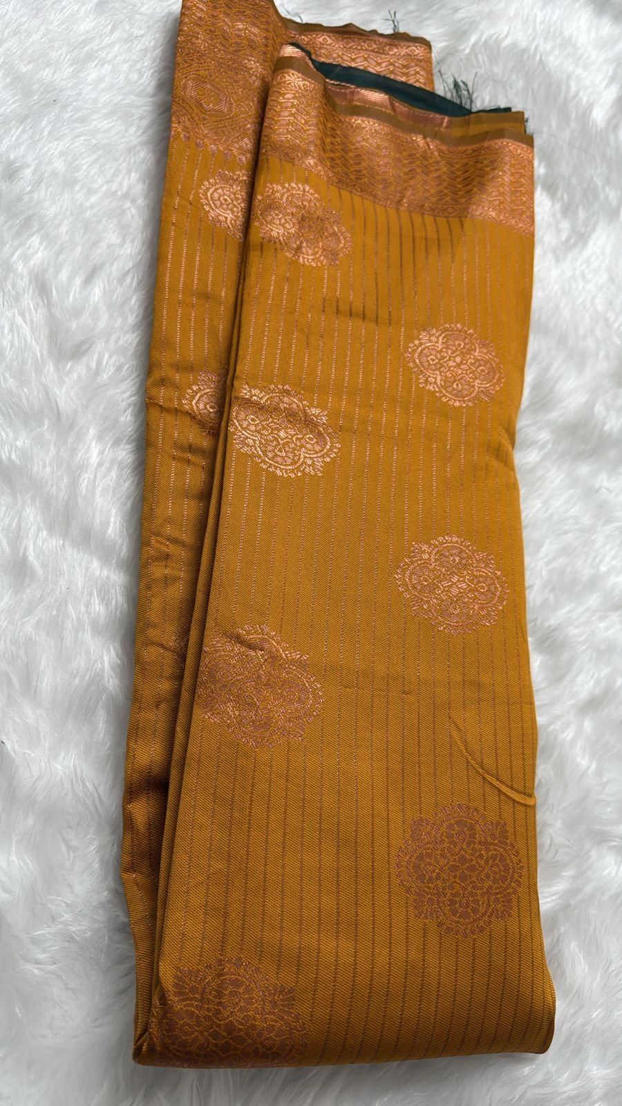 This exquisite mustard gold saree is a masterclass in understated elegance, perfect for weddings, festive gatherings, or formal events. Crafted from premium silk, it features a sophisticated play of light and texture that ensures you stand out with grace.