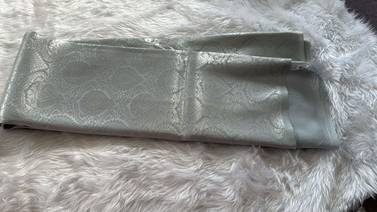 Radiant Silver-Grey All-Over Zari Brocade Saree