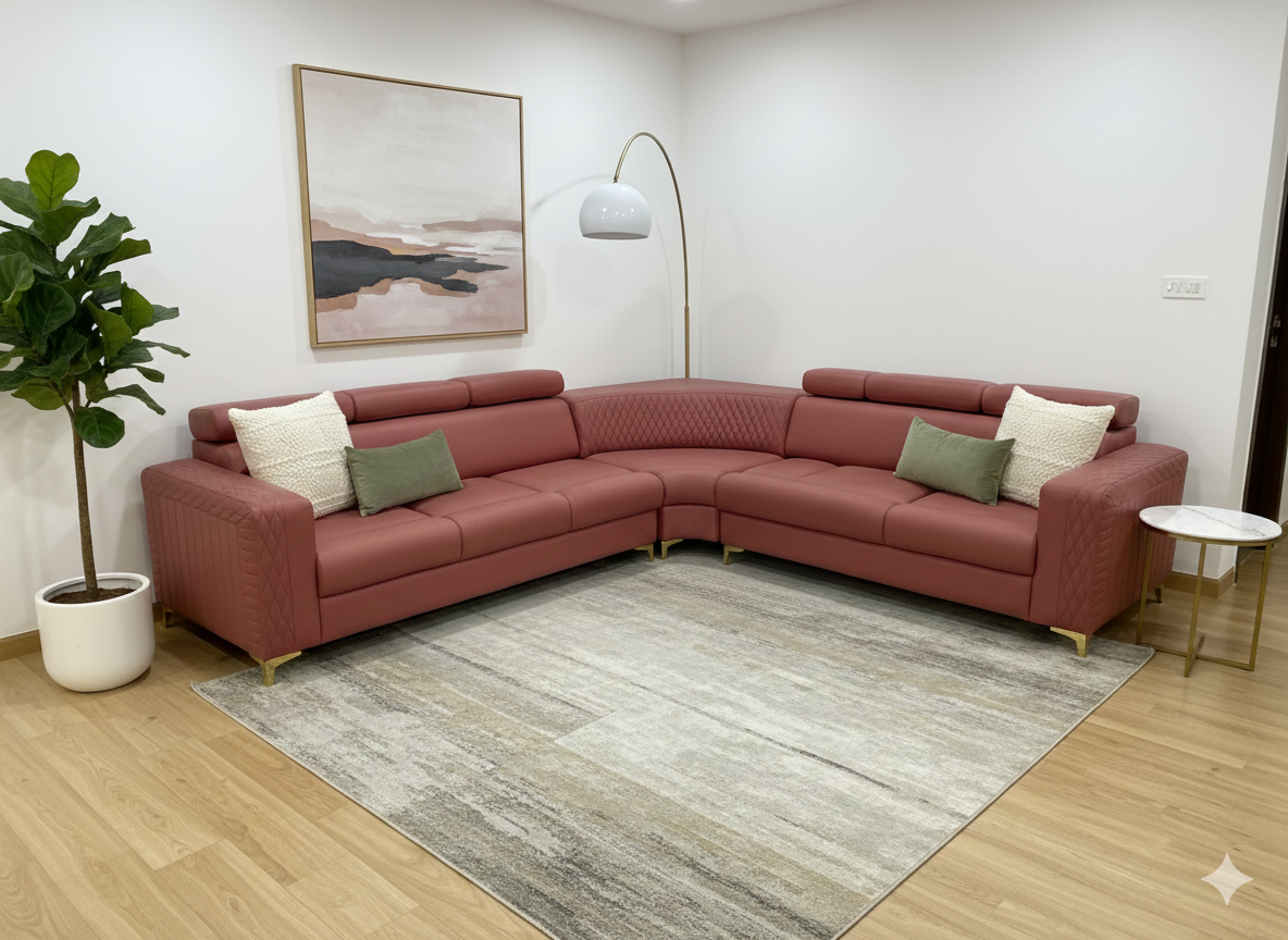 Elevate your living space with this sophisticated L-shaped sectional, designed to be the centerpiece of any modern home. Upholstered in a rich, deep rose/terracotta hue, this sofa perfectly balances bold color with timeless elegance.