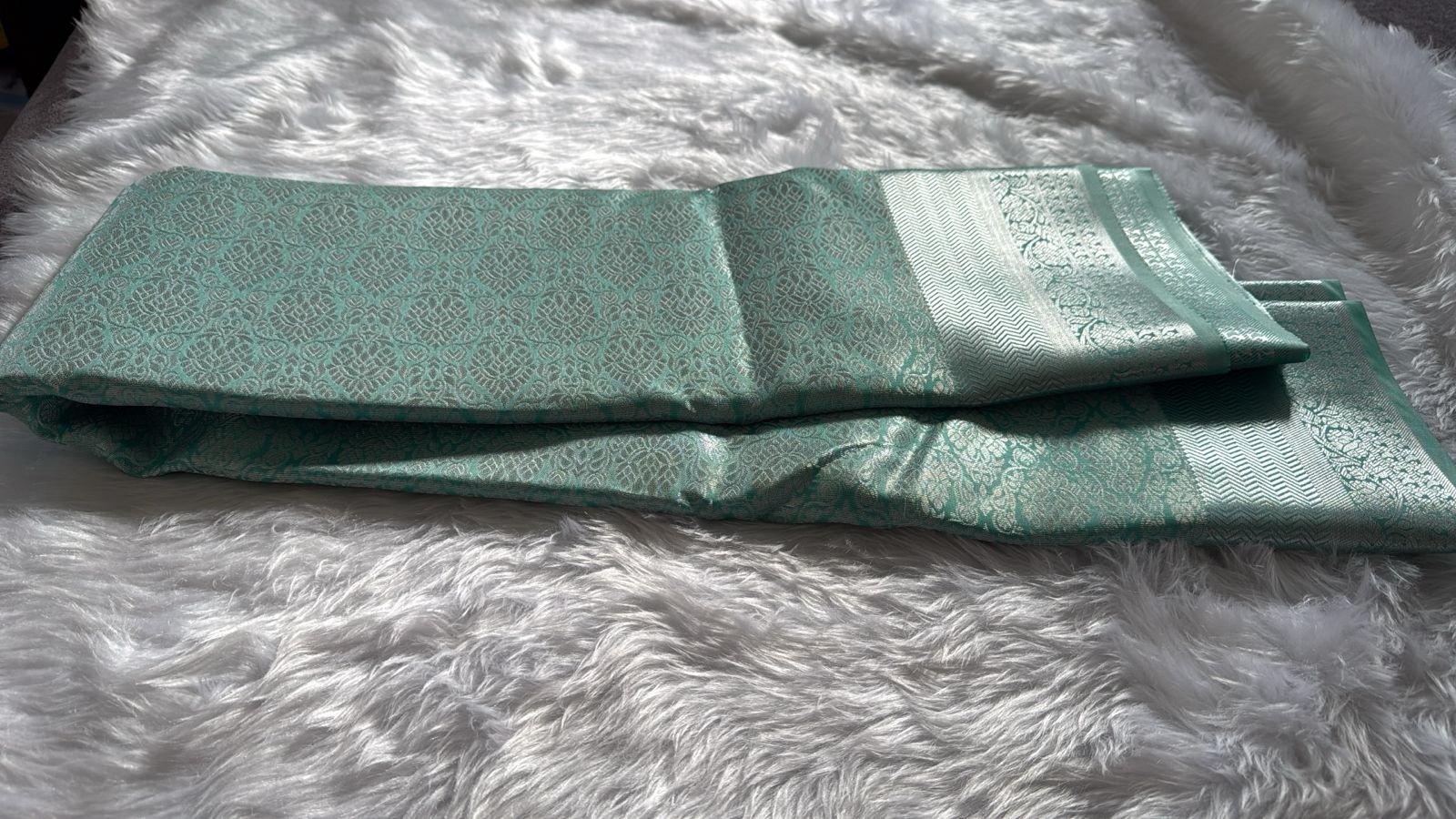 Seafoam Green & Silver Banarasi Brocade Silk Saree