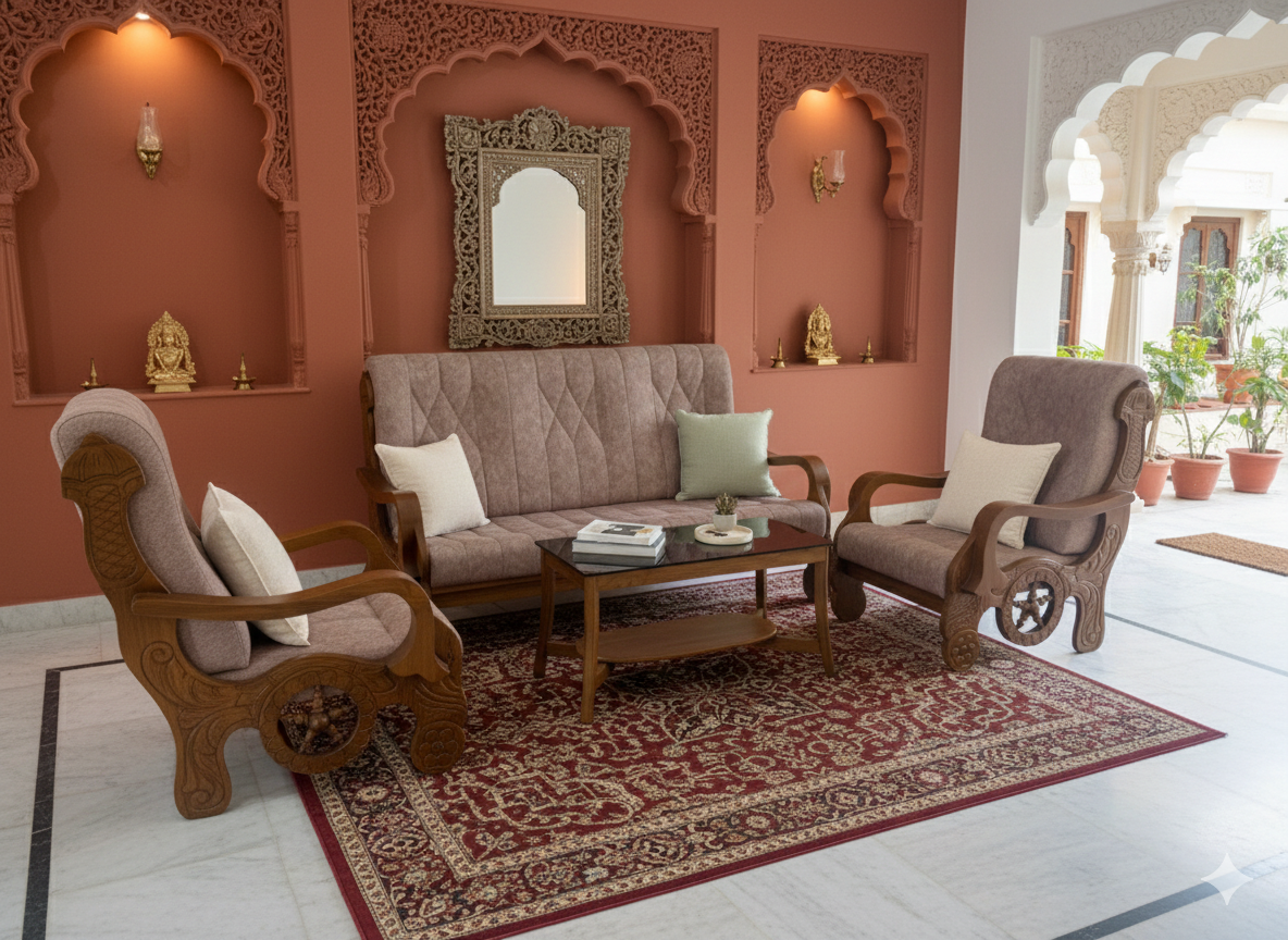 This exquisite sofa set is a masterclass in traditional Kerala craftsmanship, meticulously carved from premium Nilambur Teak. Known globally as the “Golden Tree” of timber, Nilambur teak is celebrated for its exceptional durability, rich oily texture, and natural resistance to decay.