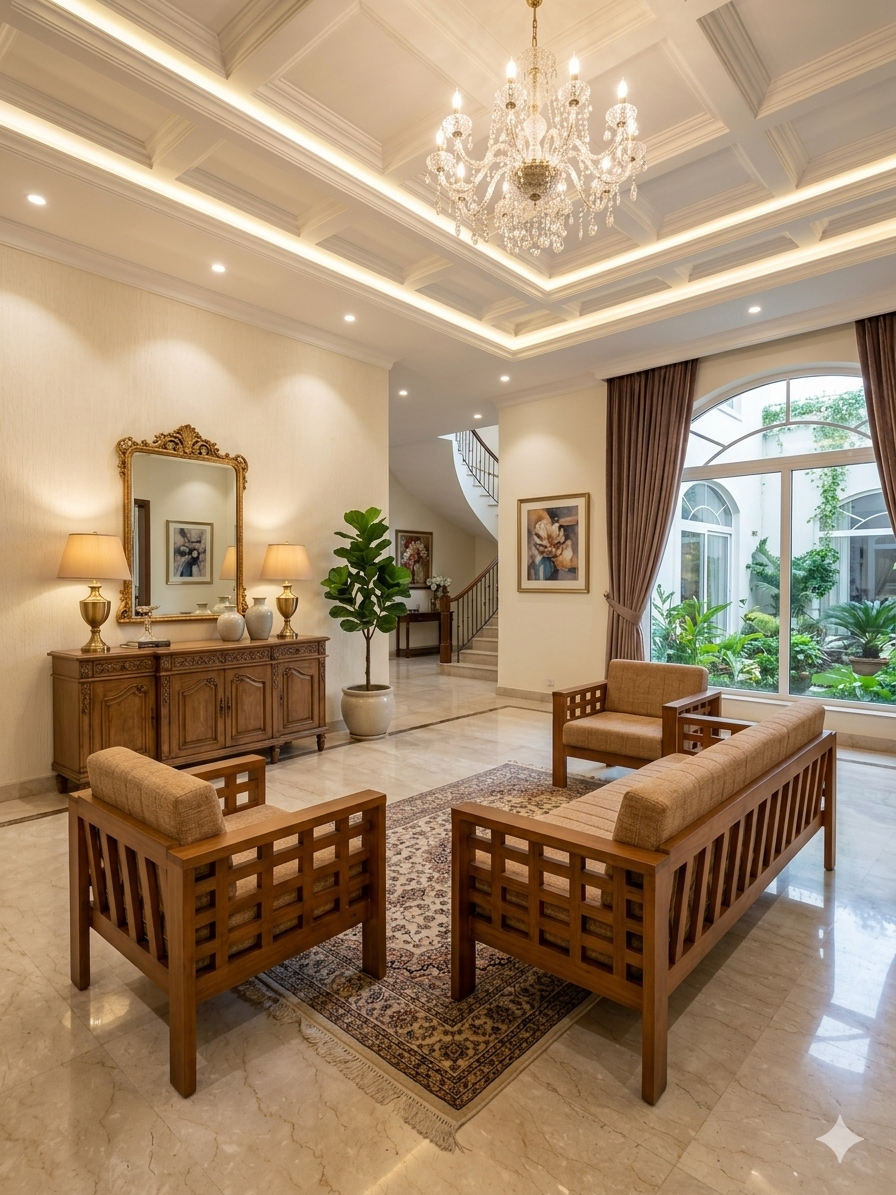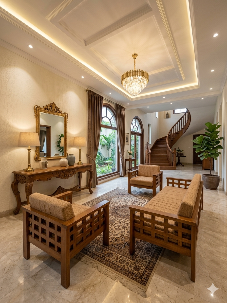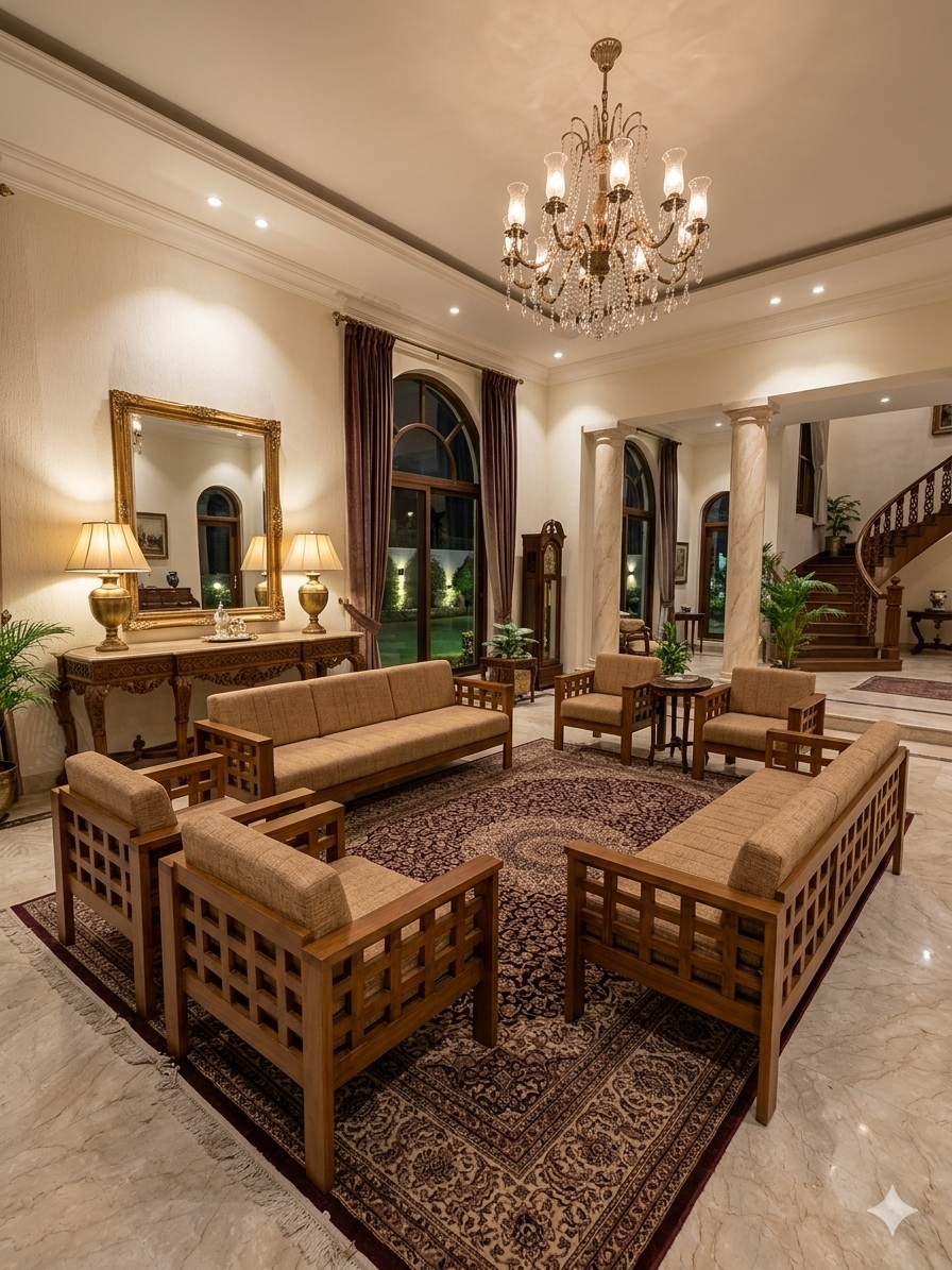 Marrying traditional strength with a clean, modern aesthetic, this Nilambur Teak Wood Sofa Set is designed for the sophisticated contemporary home. It features the legendary durability of Kerala’s GI-tagged teak wood, shaped into a sleek, minimalist silhouette that emphasizes geometry and open space.