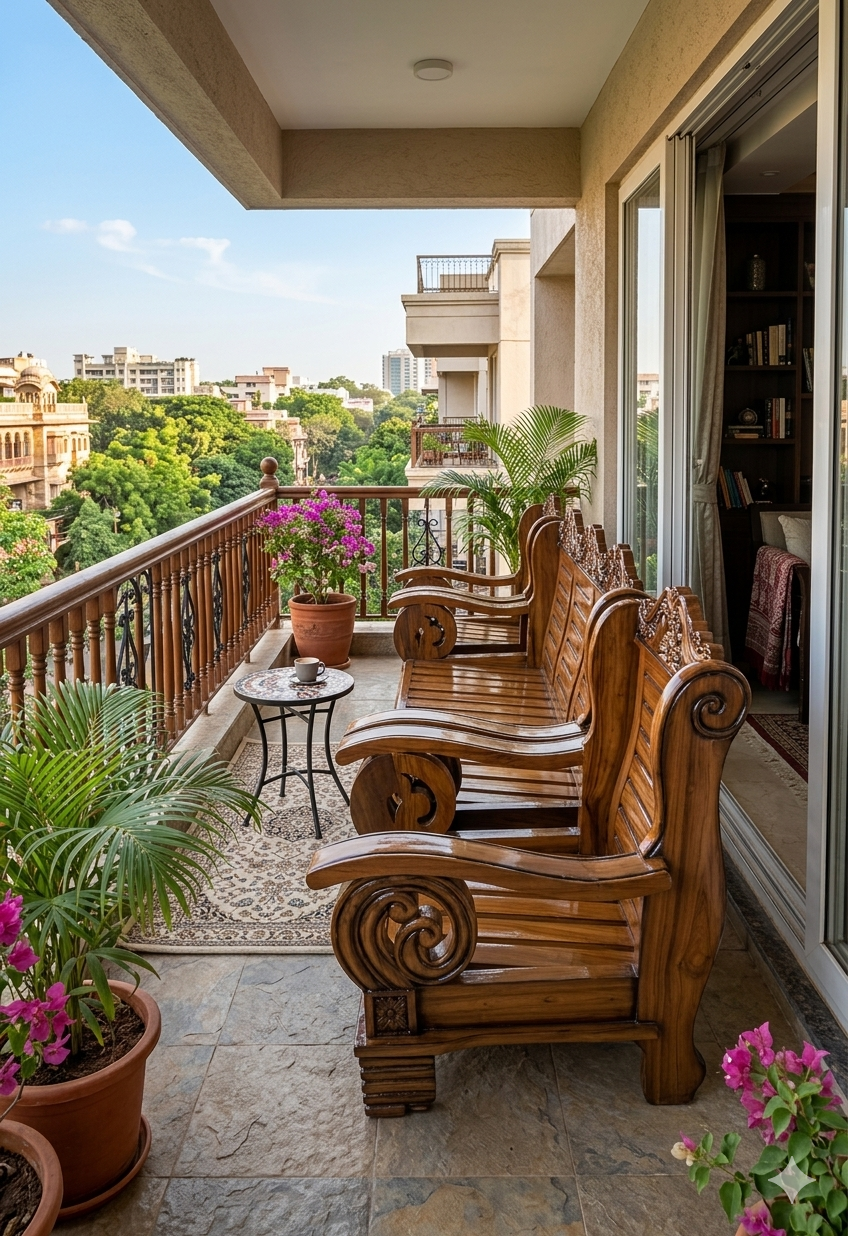 Royal Kerala Nilambur Teak Wood “Scroll-Arm” Hand-Carved Sofa Set