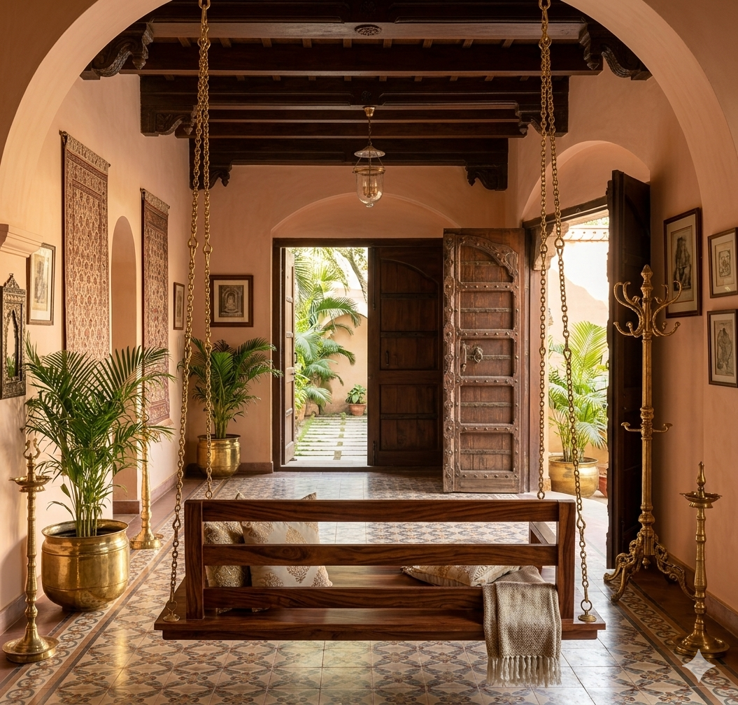 Bring the natural warmth of Kerala’s finest timber into your home with this Minimalist Nilambur Teak Hanging Oonjal. This design focuses on the raw, organic beauty of the wood, making it a versatile addition to both contemporary apartments and traditional villas.