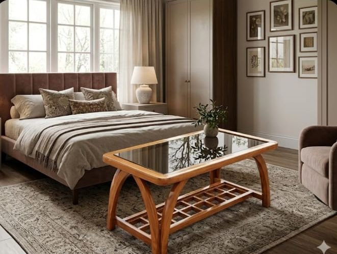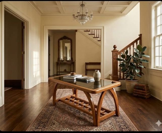 Crafted from authentic Nilambur Teak, renowned globally for its superior grain structure and golden-brown hue, this coffee table is a masterpiece of traditional Kerala woodworking blended with contemporary design. Known as the “Log of Gold,” teak from the Nilambur region offers unparalleled durability and natural resistance to decay, making this piece a lifelong investment for your home.