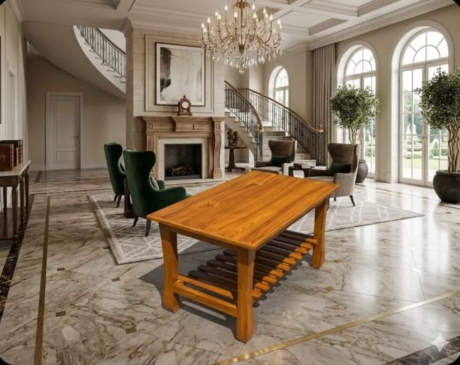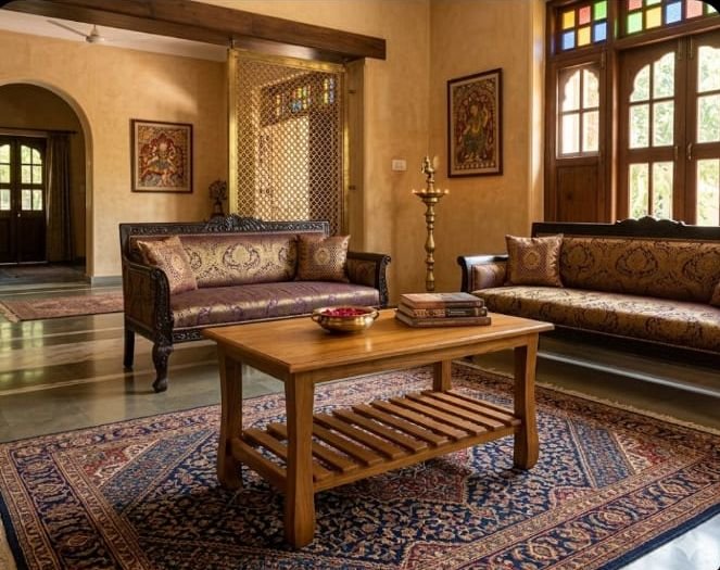 ​Elevate your living space with this premium center table, meticulously carved from world-renowned Nilambur Teak. Known as the “Log of Gold,” this timber from the Malabar region is prized for its exceptional durability, natural resistance to termites, and a stunning golden-yellow glow that deepens beautifully with age.