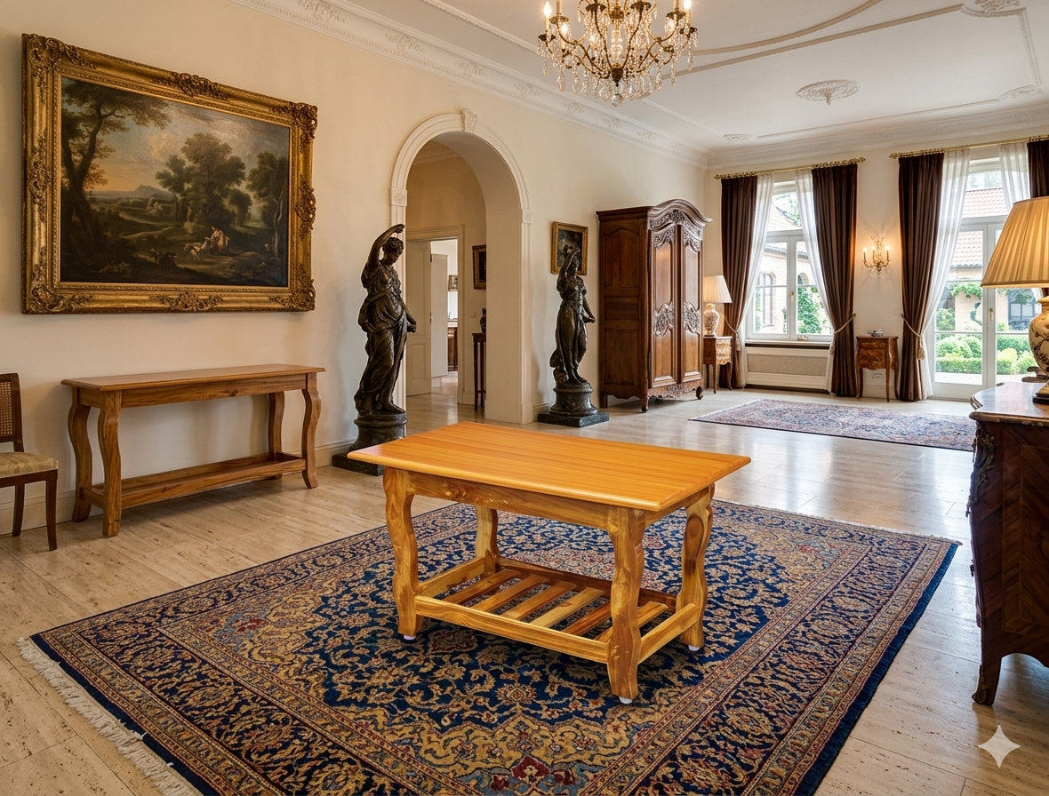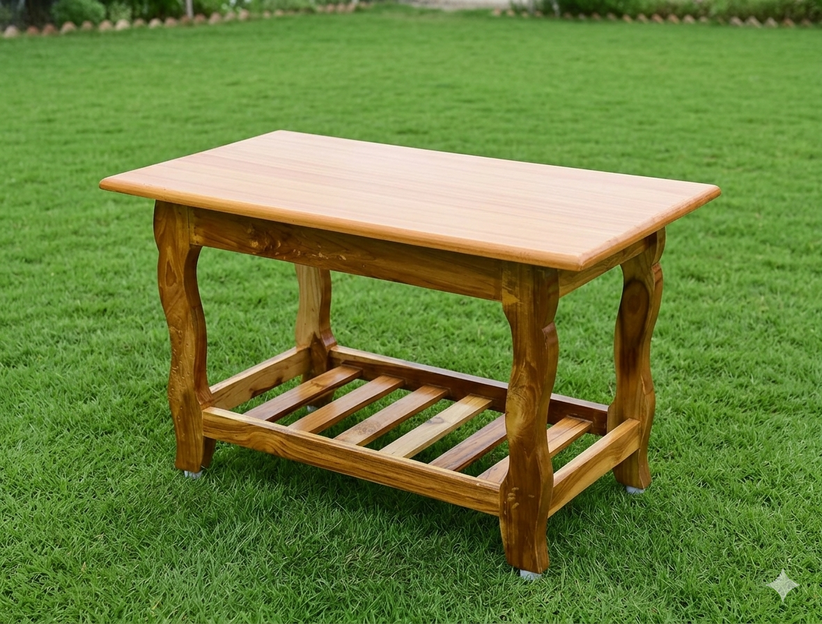 This is a premium Nilambur Teak Wood Teapoy (Coffee Table), handcrafted to showcase the natural elegance and durability that Kerala’s Nilambur teak is world-renowned for. Known as the “Home of Teak,” Nilambur wood is prized for its golden-brown hue, tight grain patterns, and high oil content, making it resistant to termites and decay.