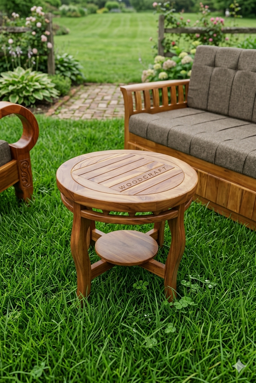 This is a masterfully crafted Nilambur Teak Wood Round Teapoy, designed to bring the warmth and luxury of Kerala’s finest timber into a compact, functional form. This piece features the signature golden-brown streaks and oily luster that make authentic Nilambur teak highly coveted for premium furniture.