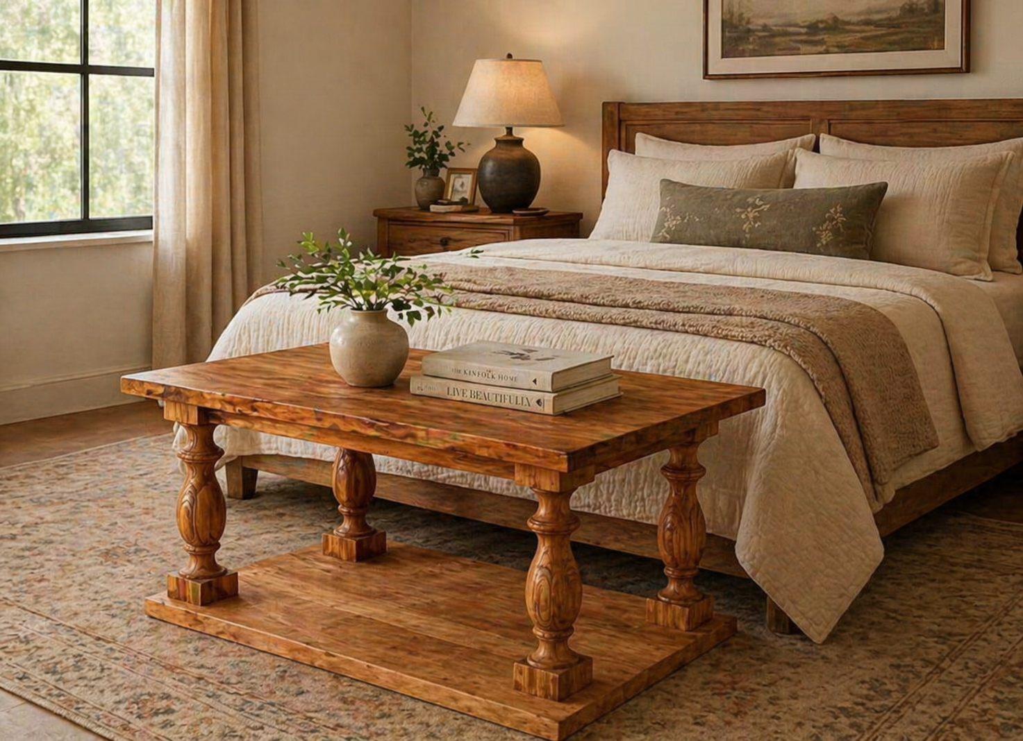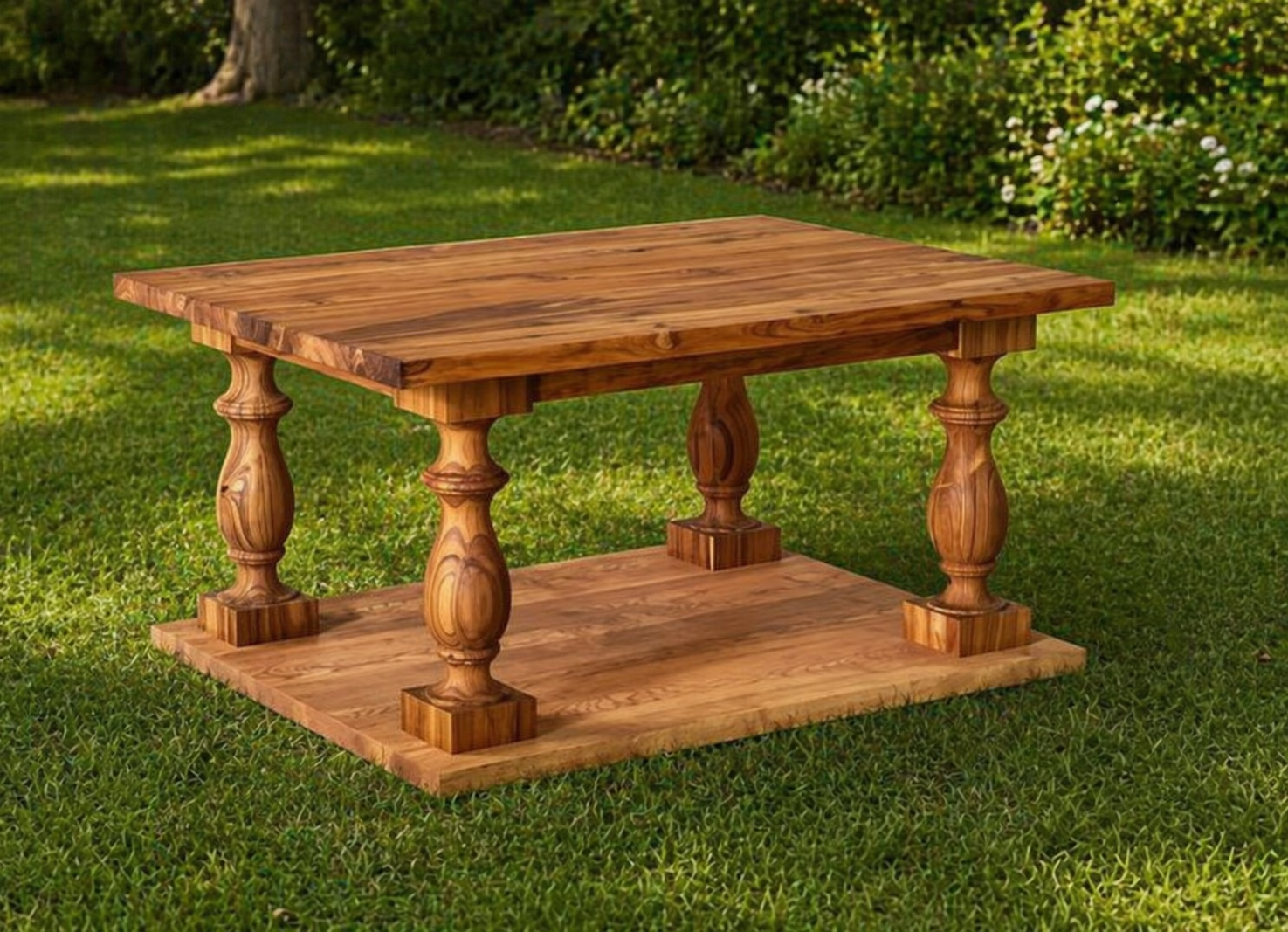 This exquisite coffee table is a masterpiece of traditional Kerala craftsmanship, meticulously hand-carved from authentic Nilambur teak. Known globally as the “Home of Teak,” Nilambur wood is prized for its exceptional durability, rich golden-brown grain, and natural oils that resist decay.
