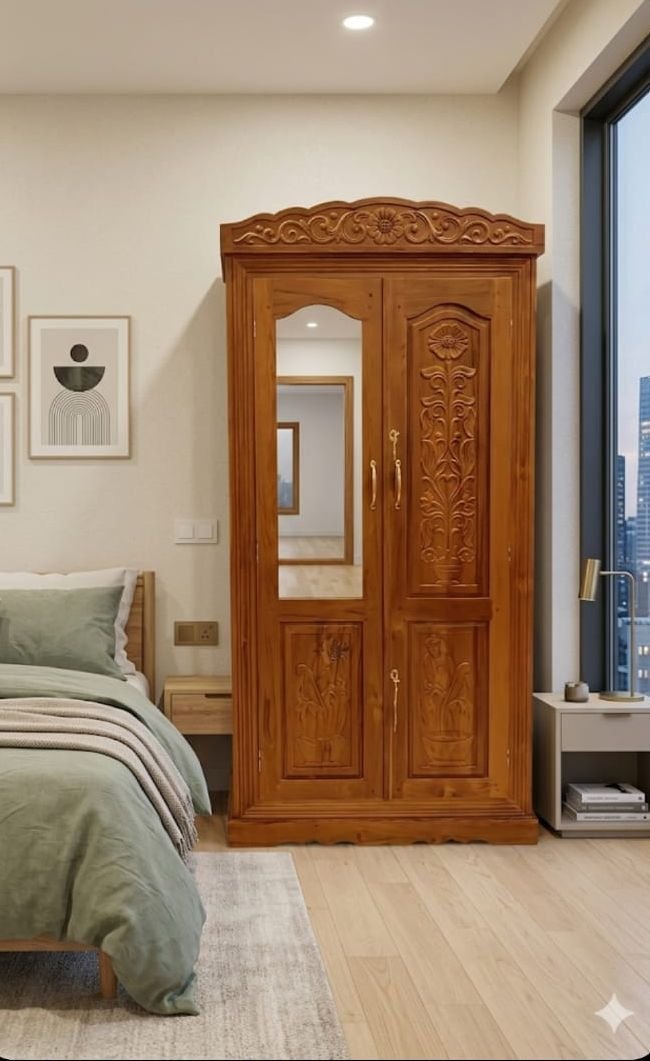 Handcrafted Nilambur Teak Two-Door Wardrobe